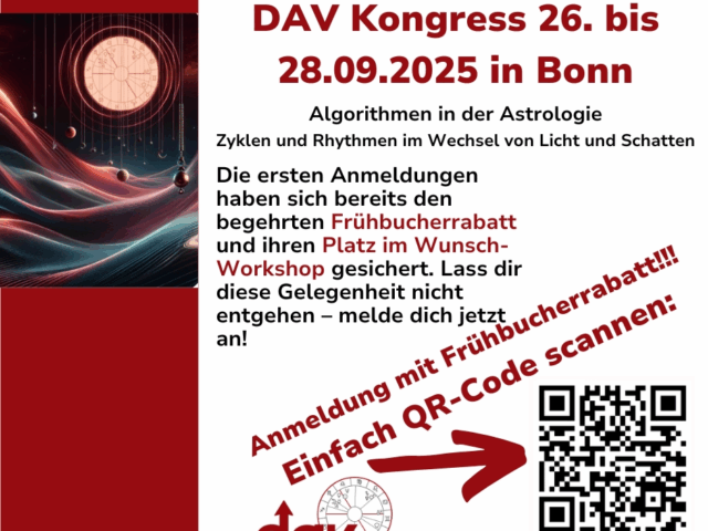 Der jährliche Kongress des Deutschen Astrologenverbandes e.V. findet demnächst statt. Ich freue mich auf spannende Vorträge, Diskussionen und natürlich auf das Wiedersehen mit Freunden und die Community. 🙂